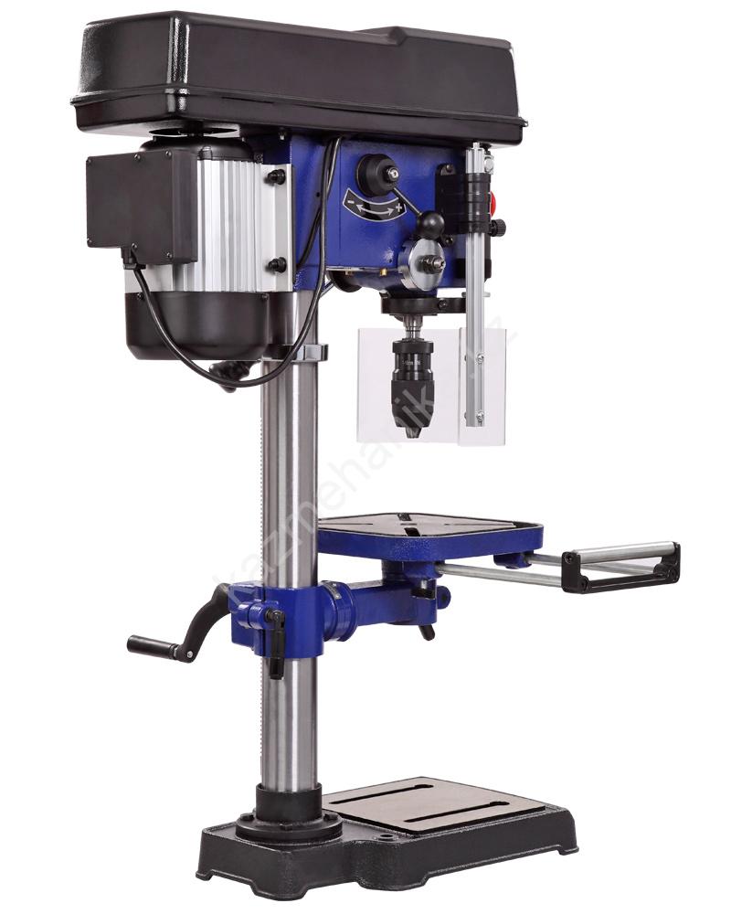 Модель DP300-16VS является самой интересной в линейке в плане функционала. Стол, опора и корпус сверлильной головки выполнены из чугуна, что придает станку серьезный вес 40 килограмм. Двигатель асинхронный, мощностью 550 Вт.