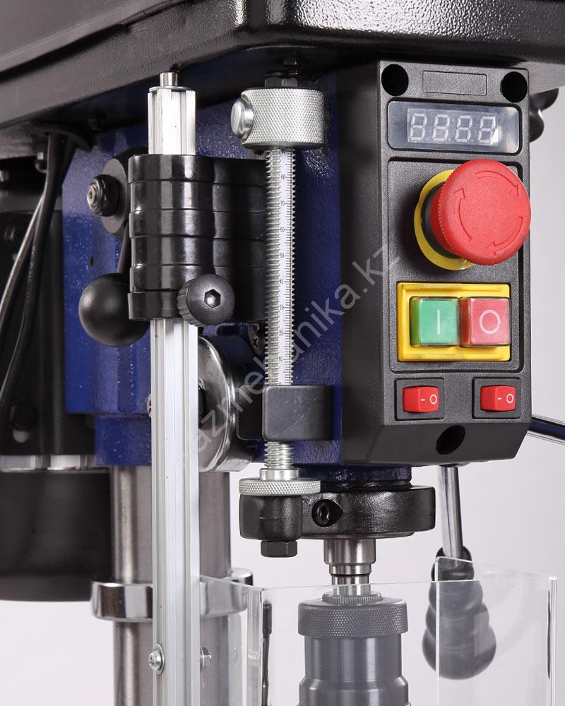 Станок обладает такими функциями, как индикация скорости вращения шпинделя, подсветка рабочего стола, кнопка аварийной остановки, удлинение рабочего стола, а также оборудован лазером — указателем,