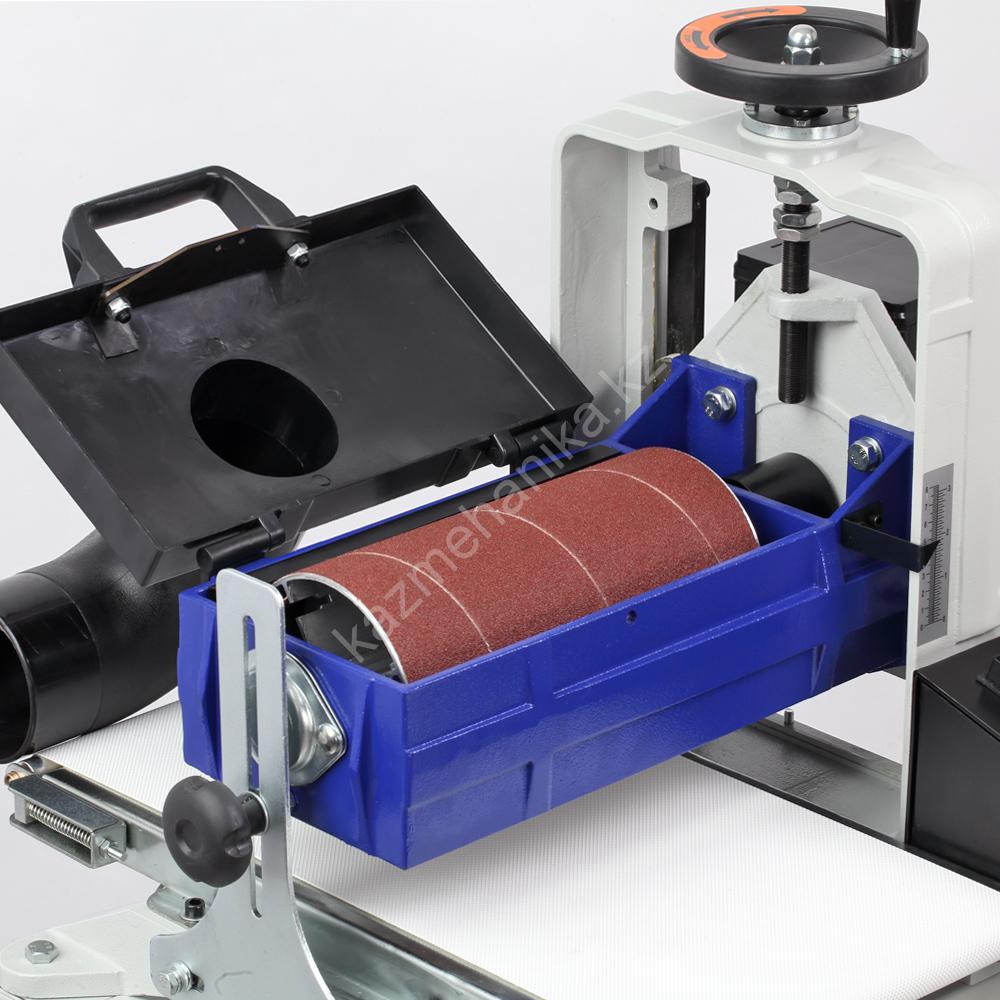 - Шлифовальный барабан имеет консольное расположение. При необходимости обработки более широких заготовок можно снять левую стойку и в два прохода обрабатывать детали шириной до 500 мм