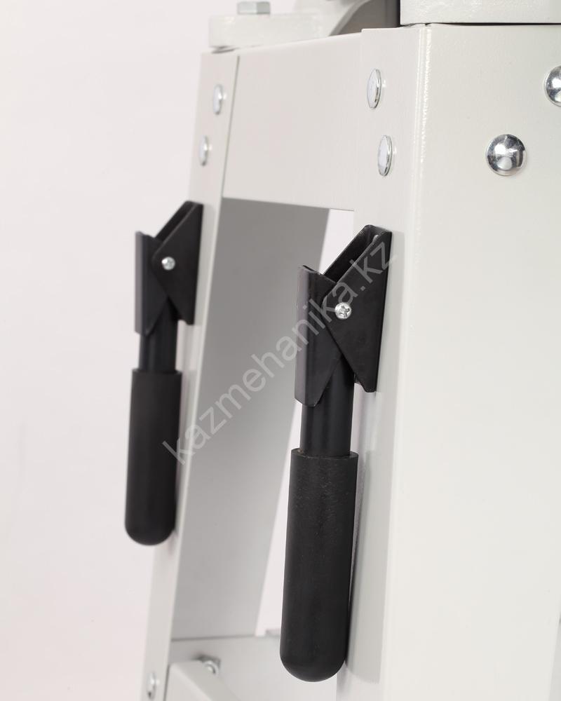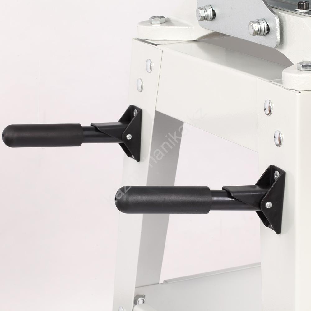 Станина выполнена из чугуна. Подставка – сборная стальная. Она снабжена складными ручками и парой колёс для удобного перемещения станка по мастерской.