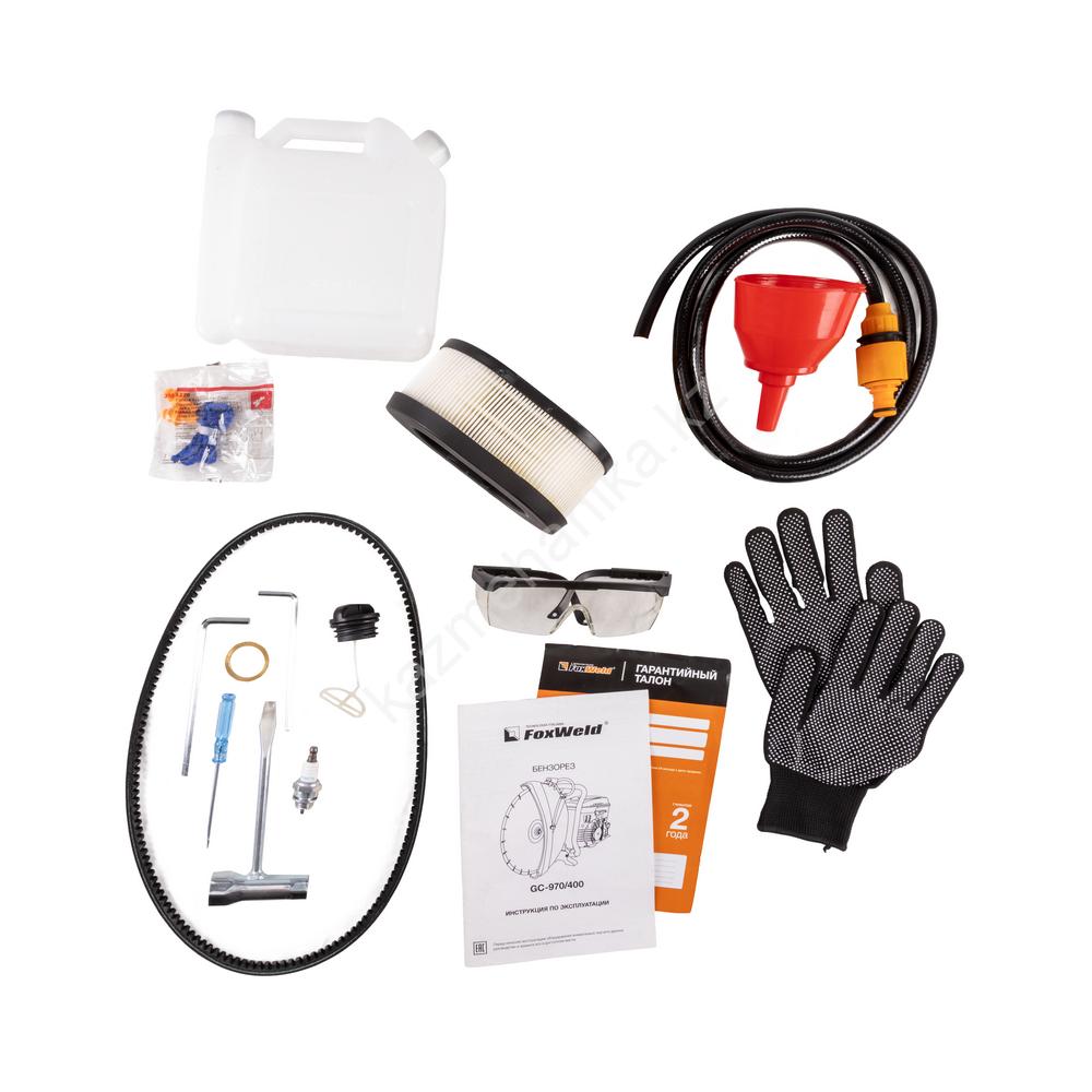 Foxweld GC-970/400 — мощный универсальный бензорез с идеальным соотношением мощности 6,5 л.с. к весу 12 кг. Японская комплектация, антивибрационная система, двухсторонняя подача воды, трёхступенчатая очистка воздуха и декомпрессионный клапан – в бензорезе GC-970/400 есть всё для эффективной работы. Предназначен для сухой и мокрой резки бетона, гранита, кирпича, строительных блоков, бордюров, асфальта, камня и др., с применением алмазного диска диаметром 350/400 мм. Для резки чугуна, стали, алюминия и других металлов используются абразивные диски диаметром 355/400 мм. В комплекте есть переходное кольцо 32 мм на 25.4 мм, которое позволяет устанавливать диски с посадочным диаметром 32 мм. Бензорез используется в строительстве зданий, сооружений, мостов, дорог, а также для специального применения: оснащение пожарных и спасательных бригад, выполнение спасательных работ и расчистки завалов.ЭЛЕКТРОННАЯ СИСТЕМА ЗАЖИГАНИЯНадёжная и качественная электронная система зажигания WALBRO обеспечивает лёгкий запуск двигателя.РЕГУЛИРУЕМАЯ ДВУХСТОРОННЯЯ ПОДАЧА ВОДЫВ этой модели вода подаётся с двух сторон диска и регулируется с помощью специального вентиля, что улучшает охлаждение диска во время работы и значительно продлевает срок службы мотора и диска.АНТИВИБРАЦИОННАЯ СИСТЕМАВибропоглощающая прорезиненная передняя рукоятка снижает воздействие на оператора. В бензорезе также есть система активного гашения вибрации. На всех узлах, наиболее подверженных вибрации, установлены пружины-компенсаторы, которые поглощают вибрацию двигателя.МНОГОСТУПЕНЧАТАЯ ОЧИСТКА ВОЗДУХАВ бензорезе используется трёхступенчатая система фильтрации. Помимо HEPA фильтра тонкой очистки, установлен губчатый фильтр, который состоит из двух частей – для грубых/крупных и мелких частиц.ДЕКОМПРЕССИОННЫЙ КЛАПАНВстроенный декомпрессионный клапан в двигателе обеспечивает снижение усилия на руку оператора до 70%, что обеспечивает лёгкий пуск двигателя бензореза большой мощности.ПРЕИМУЩЕСТВА:Карбюратор WALBRO (Япония)Свеча зажигания NGK (Япония)Электронная система зажигания WALBRO (Япония)Топливный фильтр WALBRO (Япония) с мембраной Porex (уникальная очистка)Два поршневых кольцаДекомпрессионный клапанСистема эффективного дожига топлива – повышенный КПДТрёхкулачковое сцеплениеЗащищённый от пыли стартерТопливная система с обратным клапаномРегулируемая двухсторонняя подача водыБыстросъёмный штуцер для подключения водыТрёхступенчатая система фильтрацииРегулируемый металлический защитный кожухПрочный корпусМеталлический упор с резиновыми подушкамиЗащитный кожух, усиленный металломМеталлический храповик стартераВибропоглощающая прорезиненная передняя рукояткаСистема активного гашения вибрацииКОМПЛЕКТАЦИЯ: Бензорез Foxweld GC-970/400 – 1 шт.; Диск отрезной по металлу 400 мм*25,4 мм – 1 шт.; Диск алмазный по бетону 400 мм*25,4 мм – 1 шт.; Кольцо переходное 32 мм на 25,4 мм – 1 шт.; Бак для топливной смеси – 1 шт.; Воронка – 1 шт.; Беруши – 1 комплект; Ключ универсальный – 1 шт.; Очки защитные – 1 шт.; Свеча зажигания – 1 шт.; Крышка топливного бака – 1 шт.; Отвёртка – 1 шт.; Перчатки – 1 комплект.; Шланг для подачи воды 1,5 м – 1 шт.; Ключ шестигранный HEX – 2 шт.; Ремень – 1 шт.; Фильтр воздушный – 1 шт.; Инструкция по эксплуатации + Гарантийный талон – 1 комплект.