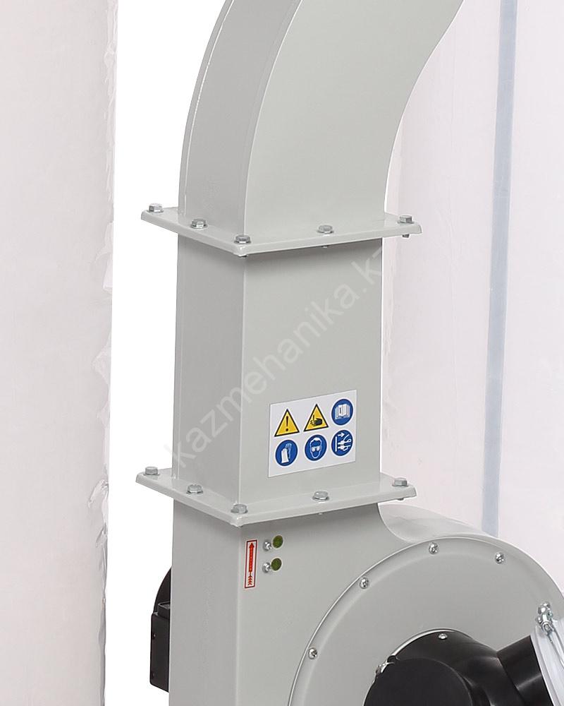 Установка состоит из двух одинаковых секций: к разделительному корпусу зажимами присоединены фильтр-мешок сверху и стружкосборник – снизу. Все элементы конструкции закреплены на общем основании с помощью кронштейнов и стоек. Выходной патрубок корпуса установки соединяется с обеими секциями тройником. В комплект поставки входит 4-х секционный переходник.