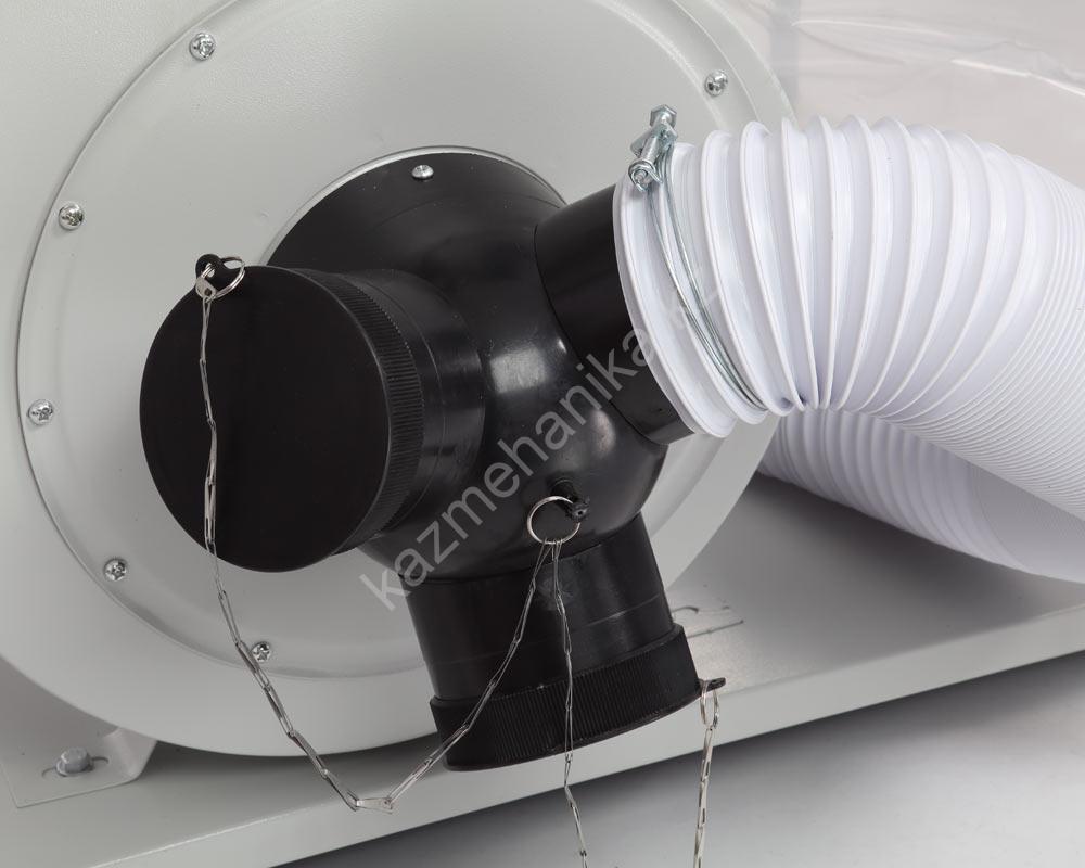 На входной патрубок вытяжки (Ø150 мм) устанавливается адаптер с тремя входами (Ø100 мм). Одновременно можно подключить три точки удаления отходов резания. Не нужные патрубки можно закрыть крышкой.