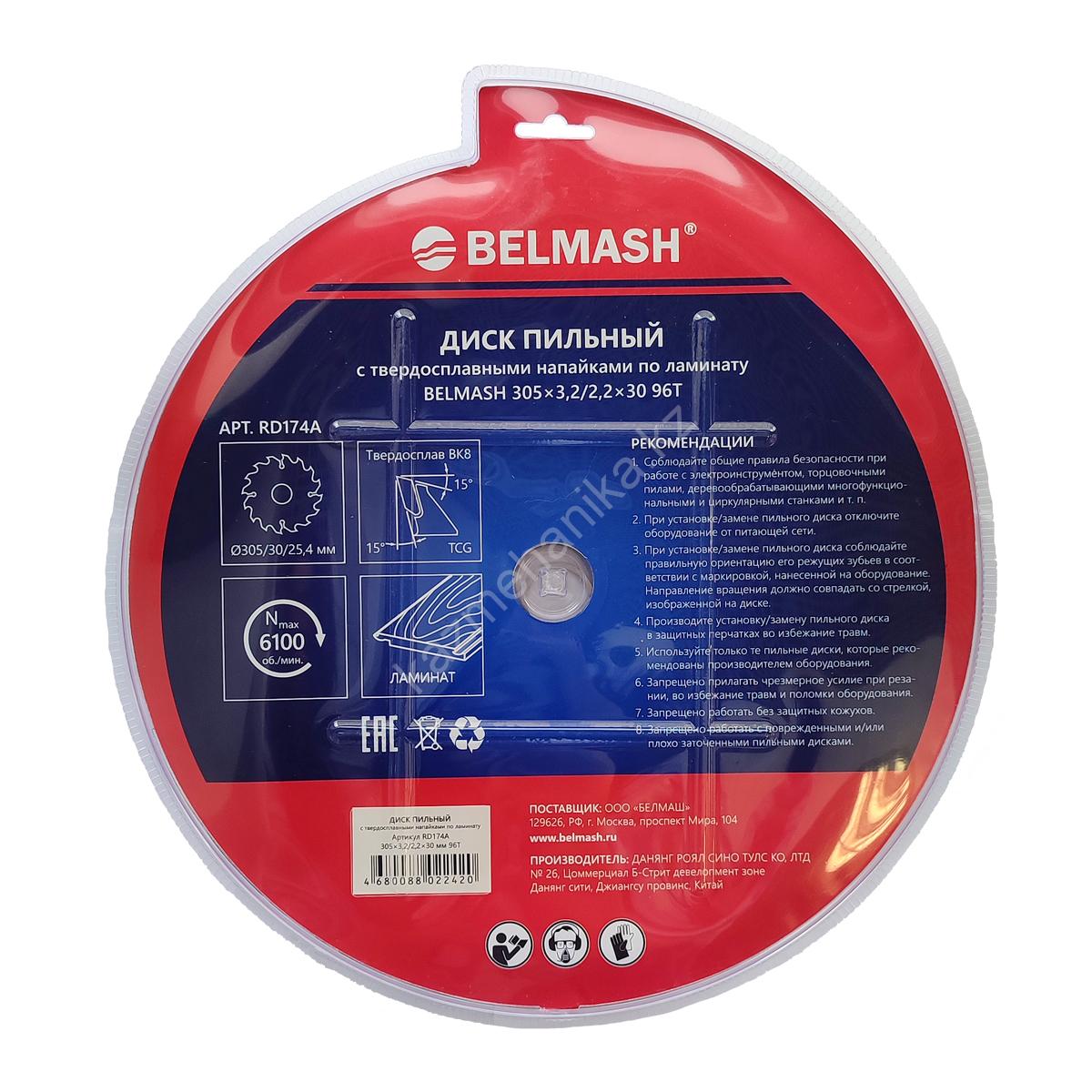 Диск пильный по ламинату BELMASH 305×3,2/2,2×30 96T твердосплавными напайками, которые делают зубья износостойкими, способными сопротивляться повышенным ударным нагрузкам.