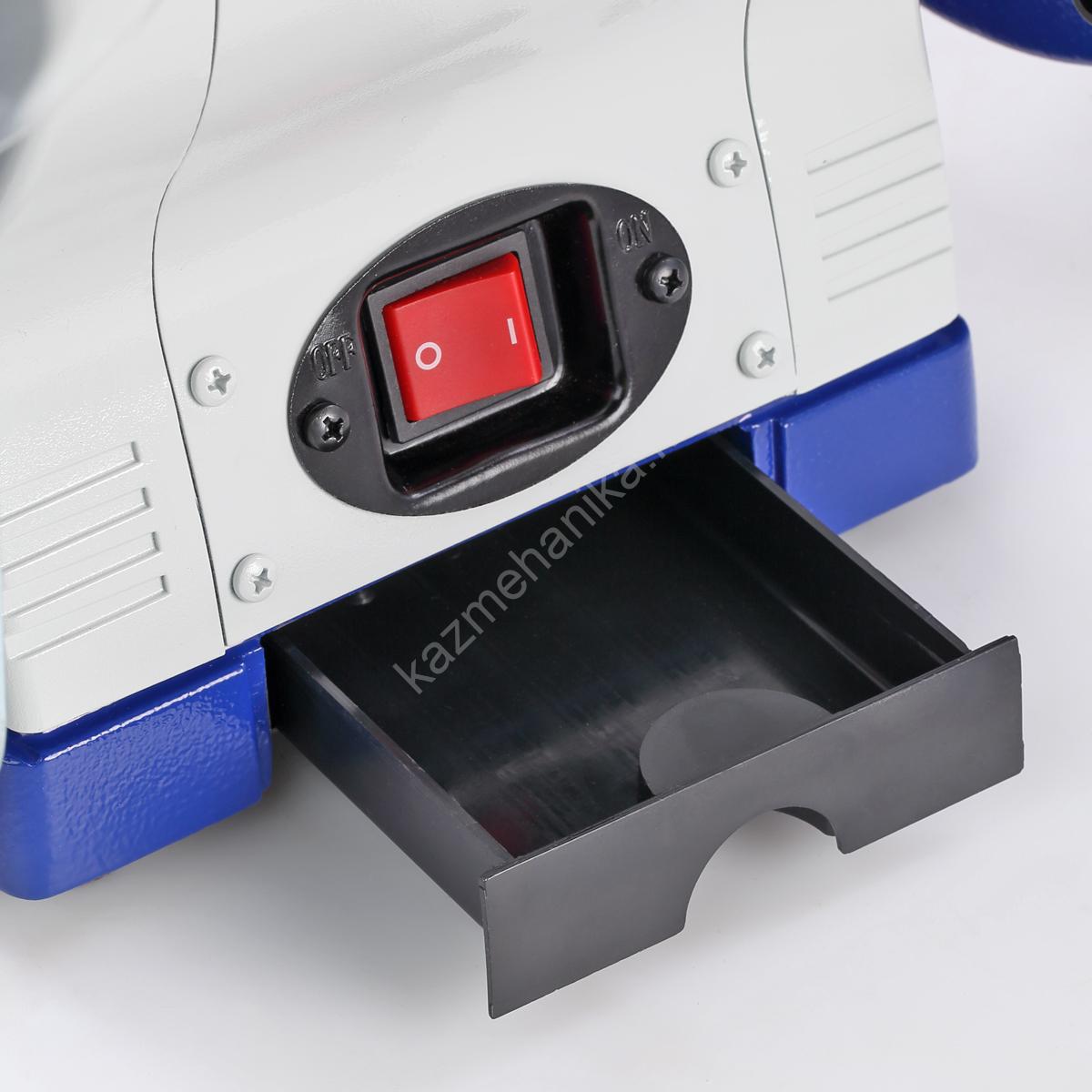 На корпусе установлены устройство для правки диска и регулируемый узел подсветки. В нижней части основания имеется отсек для хранения инструментов. Основание из литого алюминия. Имеются два отверстия крепления к верстаку.