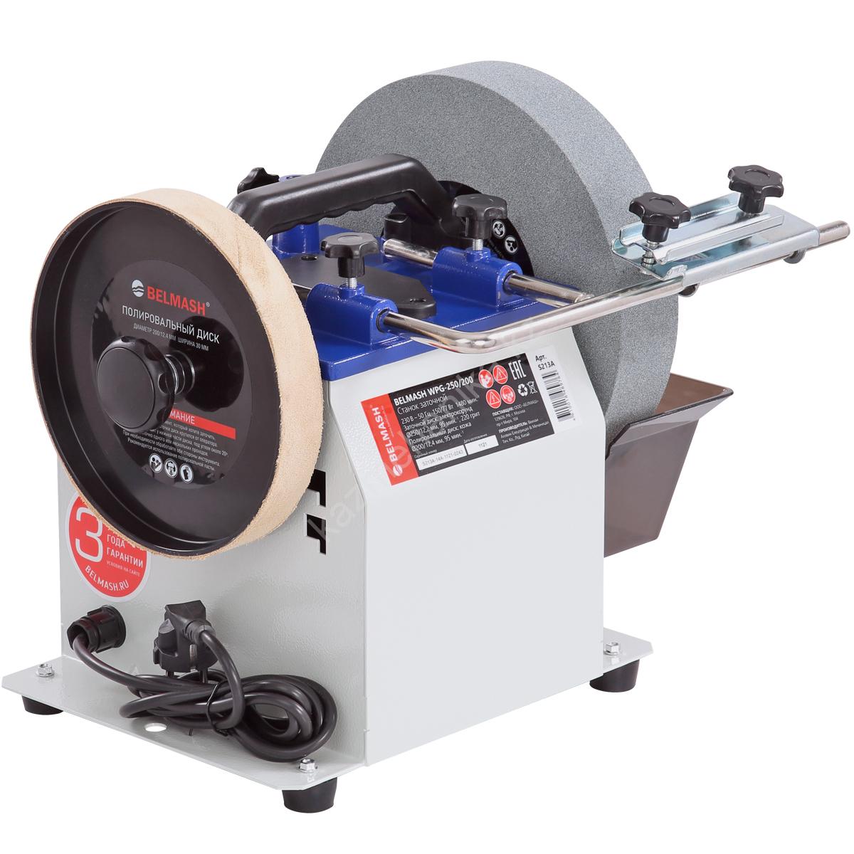 Станок BELMASH WPG-250/200 предназначен для мокрой заточки, правки и доводки режущего инструмента (ножи, ножницы, топоры и т.п.).