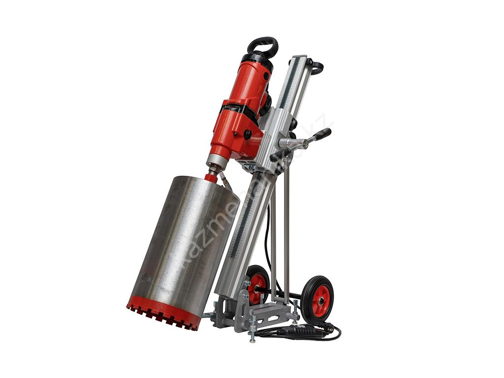 Профессиональный, полностью готовый к работе, комплект для алмазного бурения. Предназначен для сверления отверстий диаметром 20 – 160 мм в бетоне, железобетоне, камне, кирпиче и других строительных материалах с подачей воды.