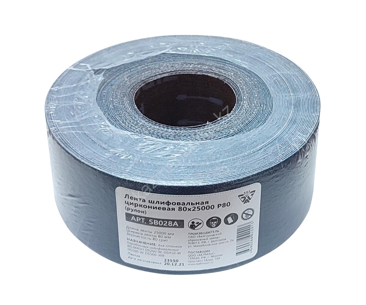 Лента шлифовальная циркониевая 80х25000 P80 применяется на станках барабанных шлифовальных BELMASH DS-260-W, DS-410-W, DS-560-W, DS-560-WB. Зернистость 80 грит. Серия шлифовальной шкурки ZX10RW. Основа – тканая, влагостойкая, полиэстер.