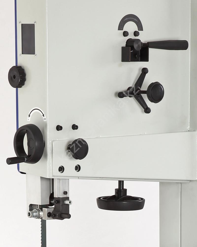 На станке используются пильные полотна длиной 3607 мм и шириной от 9,5 до 37 мм, что позволяет осуществлять как прямолинейный, так и фигурный распил. Ослабление натяжения полотна осуществляется специальным рычагом в одно движение. На правой части рамы, сверху и снизу расположены смотровые окна для отслеживания расположения пильного полотна на шкивах. Шкивы (маховики) выполнены из чугуна, диаметр — 475 мм.
