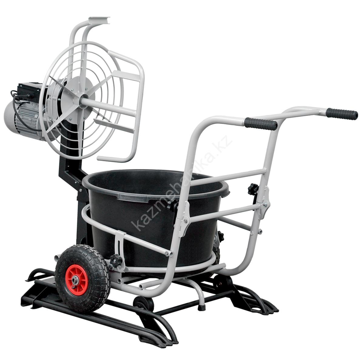 Отдельная станция с мотор-редуктором – это удобно. Ее можно расположить возле розетки, а готовый раствор перемещать на тележке. При этом не нужно использовать удлинители и делать смесь рядом с рабочим местом, шнур питания не будет мешать, кроме того, перемещается только смесь на тележке – это легче, чем передвигать всю установку.