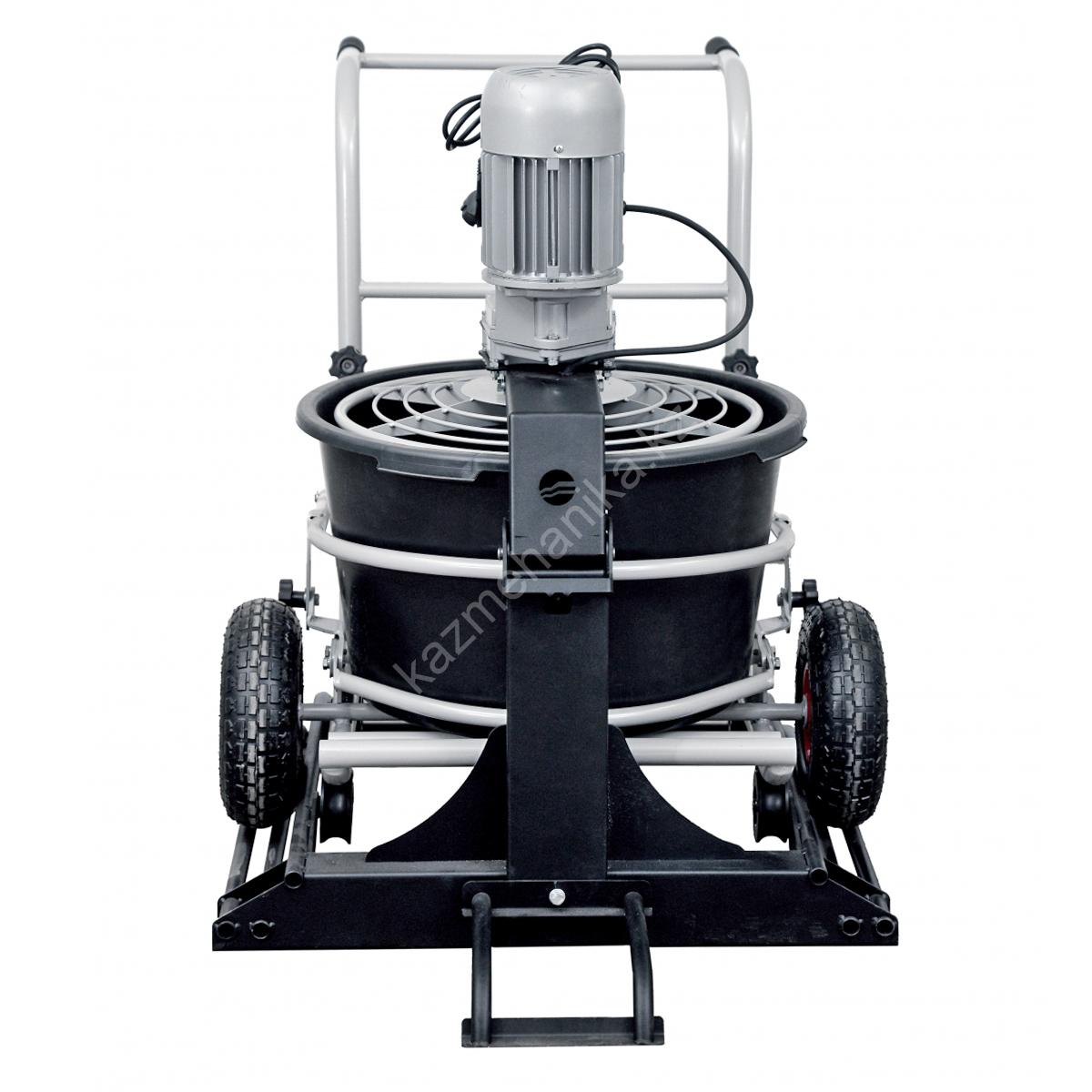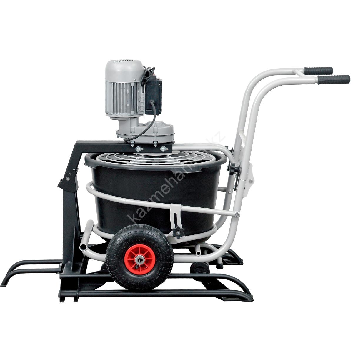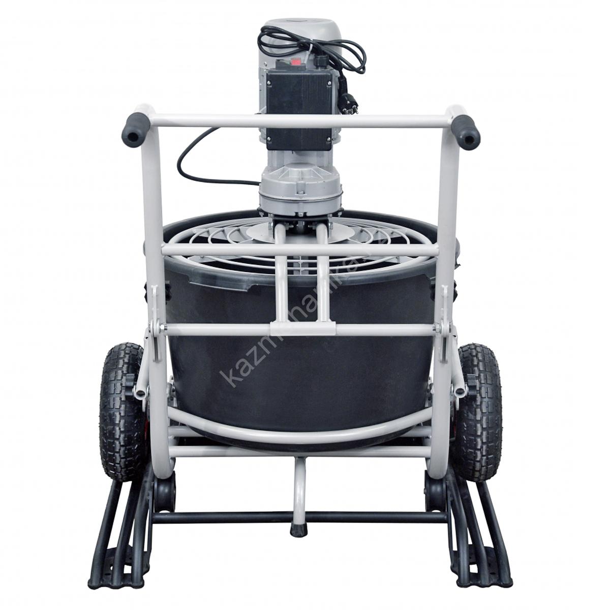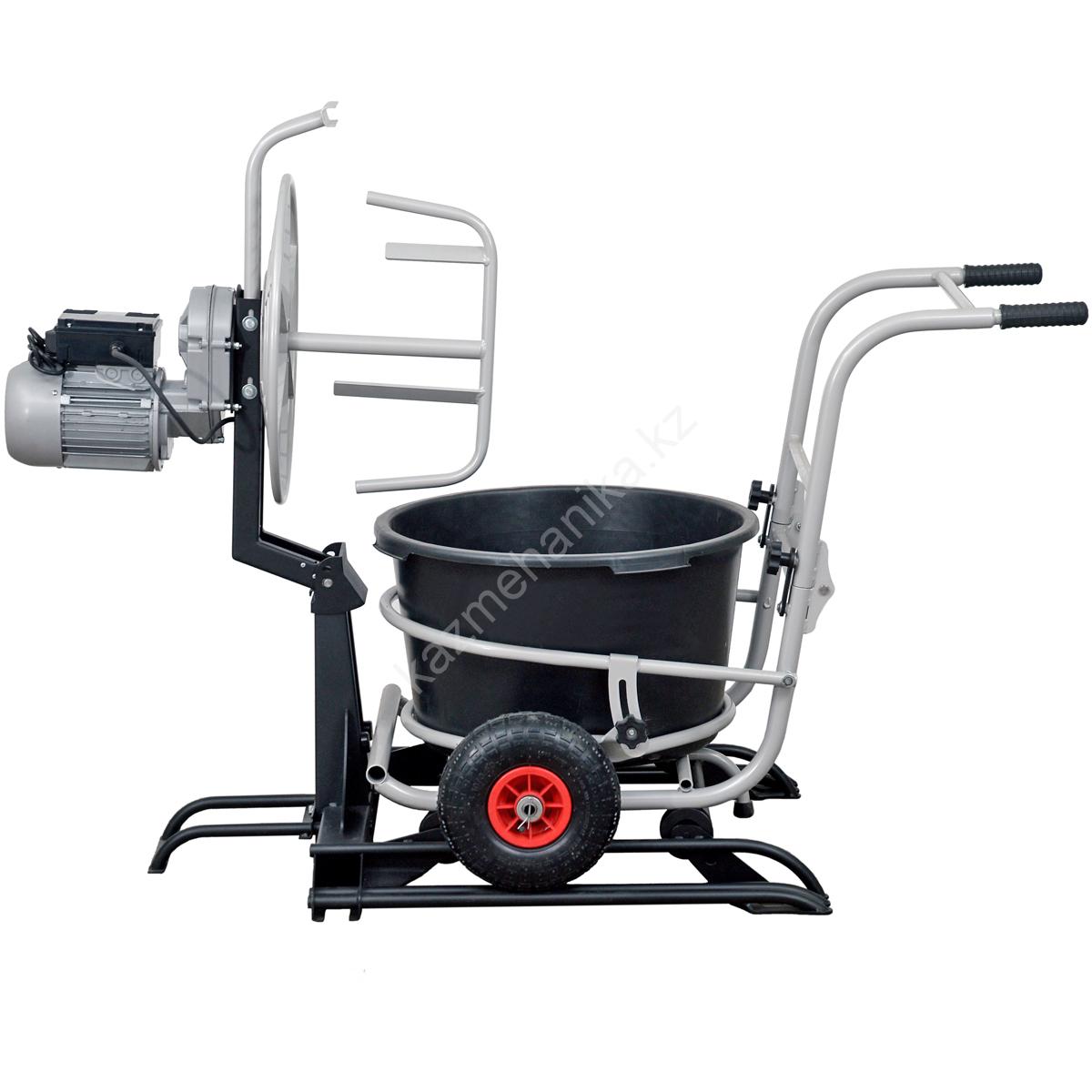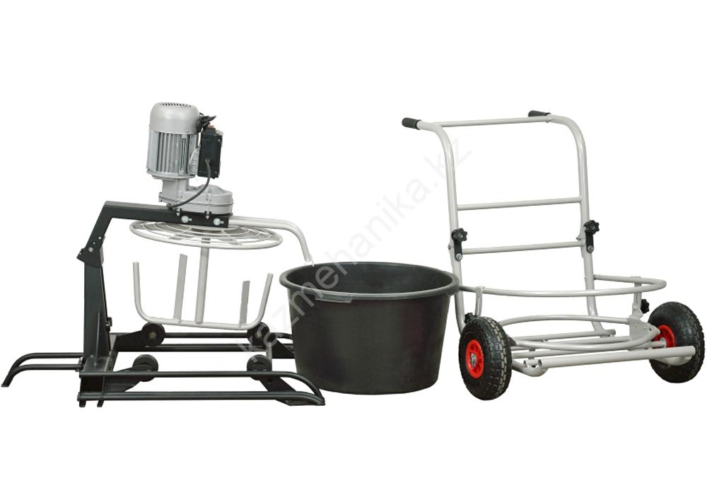 Миксер состоит из отдельной станции, тележки с пневматическими колёсами и ёмкости для смешивания.