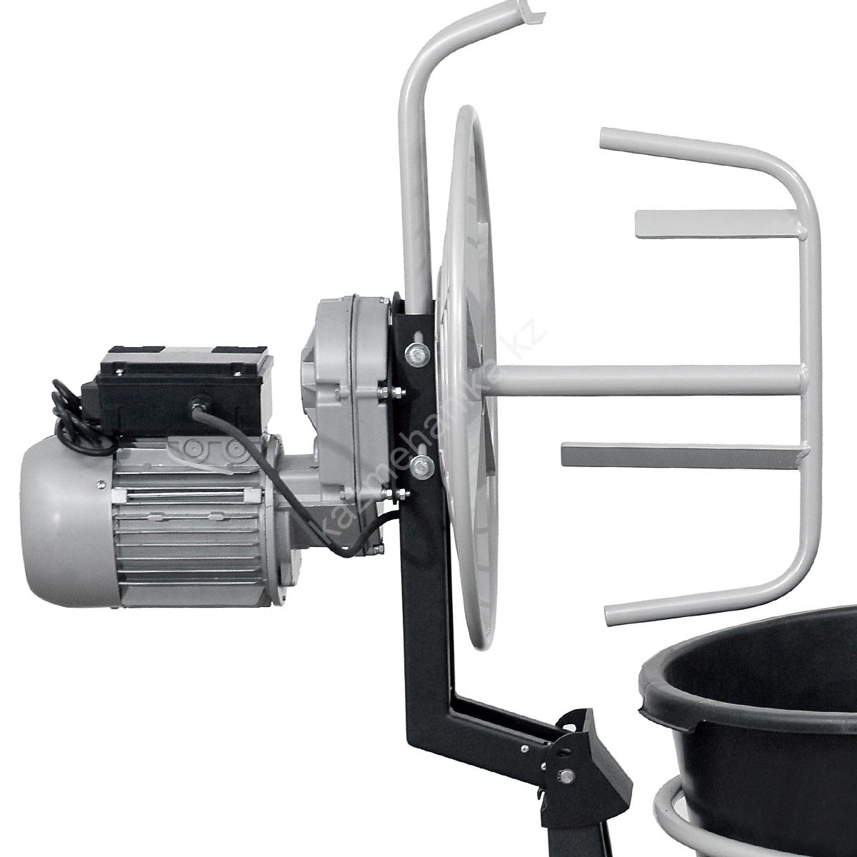 Двигатель асинхронный со встроенным редуктором и защитой от перегрева. Режим работы S1. Он работает на низких оборотах, что позволяет не захватывать воздух при смешивании. В результате получается однородная смесь отличного качества в большом объёме.