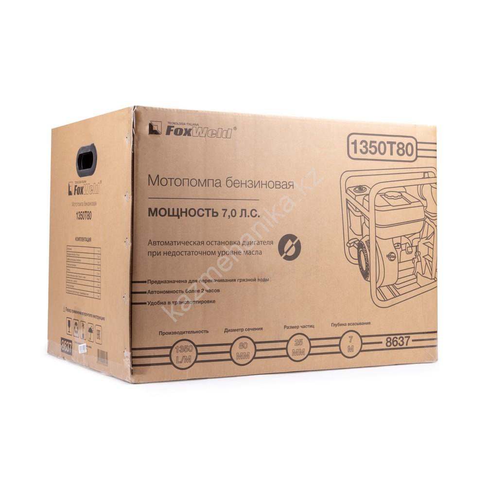 Мотопомпа бензиновая FoxWeld 1350T80 представляет собой автономный центробежный насос для перекачки грязной воды, работающий от двигателя внутреннего сгорания. Максимально допустимый диаметр частиц в воде 25 мм. Легко справится с откачкой дренажных колодцев, ям, прудов, бассейнов, подтопленных подвалов в результате протечек или стихийных бедствий — и всё это в условиях отсутствия электричества. Может быть использована для откачки строительных котлованов, очистки выгребных ям и заиленных водоемов. Насосная часть легко разбирается для очистки от мусора. Для гашения вибраций в устройстве применены 6 резиновых амортизаторов, установленных штатно, а также дополнительно 4 резиновые ножки для силовой рамы в комплекте. При средней нагрузке данная модель способна перекачивать жидкость с производительностью 1350 литров в минуту, при максимальном напоре 28 метров. Запуск мотопомпы осуществляется с помощью ручного стартера.