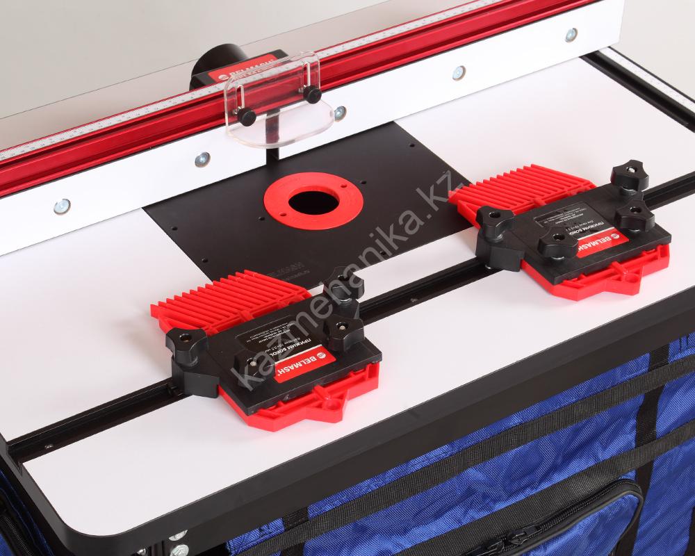 В комплекте поставки имеются два одинарных боковых прижима из литого пластика. Они позволяют надежно позиционировать заготовку относительно параллельного упора.