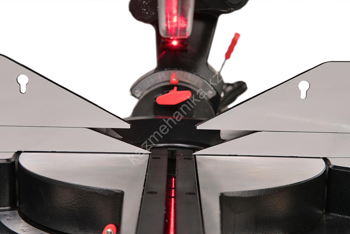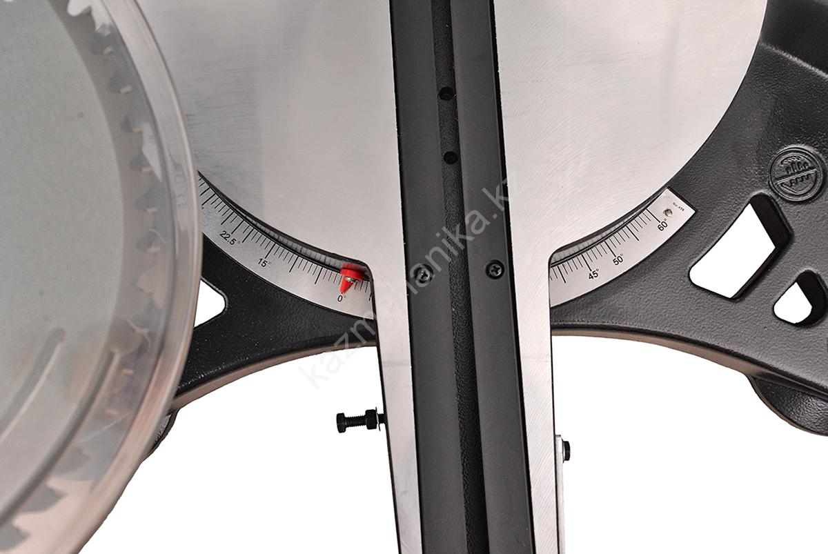 Поворотный стол поворачивается на 50° влево и 60° вправо с жесткими упорами в 0°, 15°, 22.5°, 31.6°, 45° и 60°.