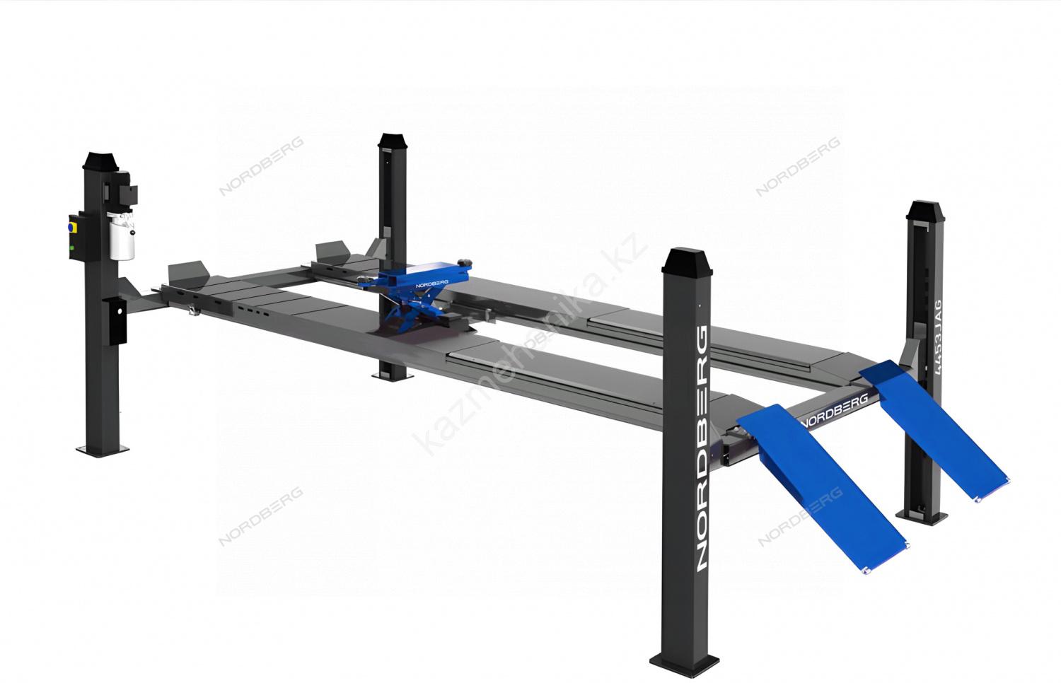 Четырехстоечный подъемник для сход-развала NORDBERG 4453JAG – профессиональное оборудование для обслуживания легкового, коммерческого и грузового транспорта в автосервисных мастерских и СТО.
