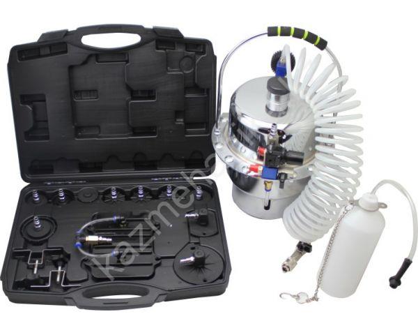 Комплектация устройства позволяет заменить тормозную жидкость с последующей прокачкой системы одному человеку. Благодаря продуманной конструкции оборудования абсолютно исключено попадание воздуха в тормозную систему машины. Создает мощный вакуум для промывки гидравлических тормозов и сцепления. Качественный манометр регулирует рабочее давление устройства.