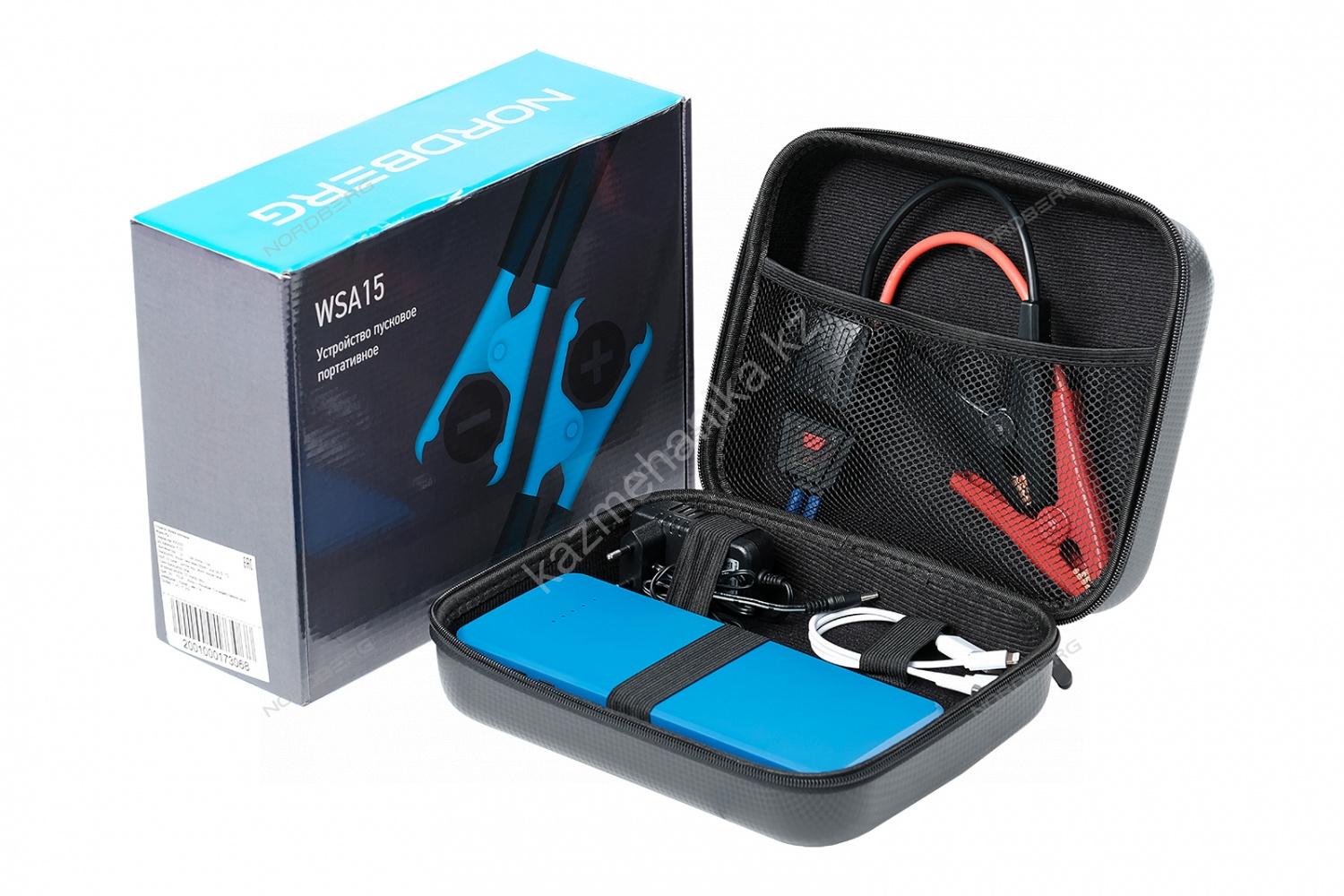 Пуско-зарядное портативное устройство NORDBERG WSA15 – компактная модель для запуска двигателя легковых автомобилей и мототехники с разрядившейся АКБ, а также зарядки аккумуляторных батарей.