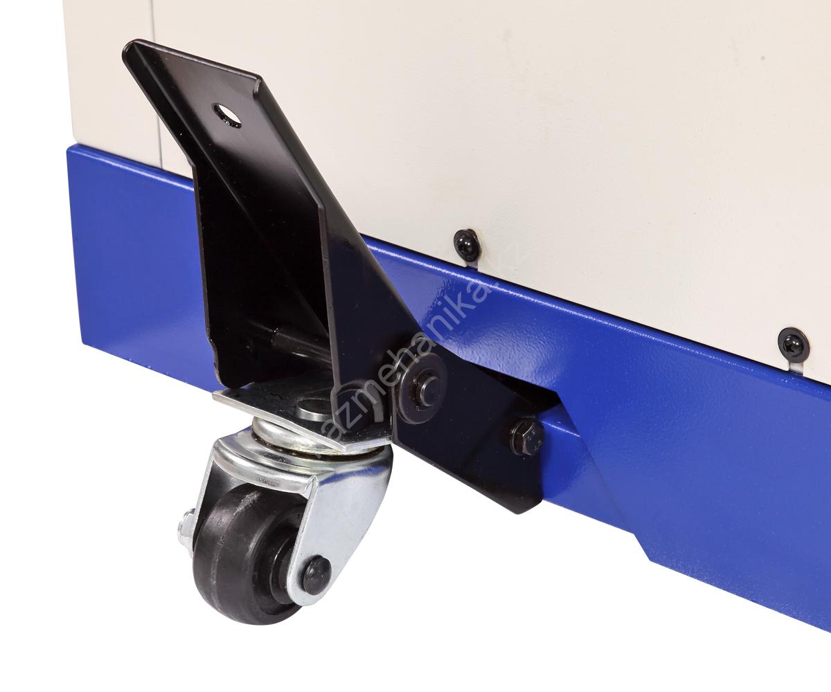 В нижней части основания установлена колесная система, которая позволяет перемещать по мастерской массивный станок (198 кг).