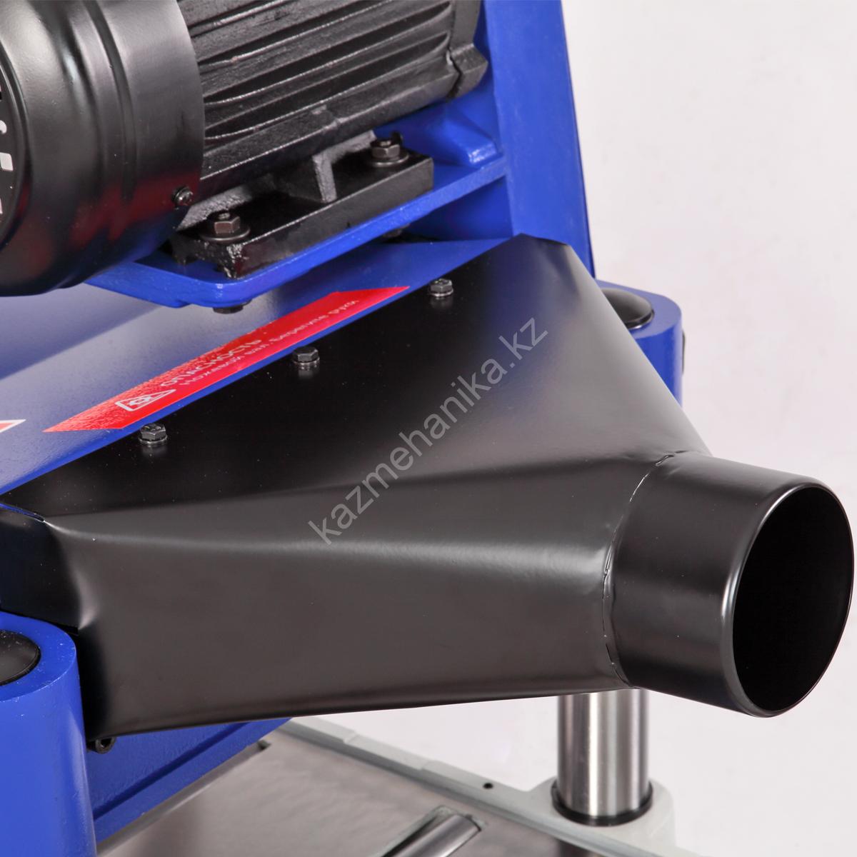 На стальном корпусе размещен патрубок (100 мм), к нему подключается система аспирации. На выключателе удобное размещение кнопок для быстрого включения/отключения станка.