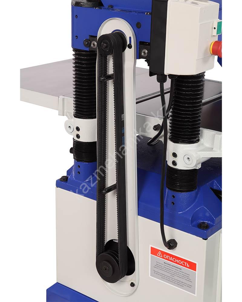Рабочий стол, корпус и основание ножевого вала изготовлены из чугунного литья, что обеспечивает устойчивость и точную работу без вибраций. Строгальный узел установлен на четырех направляющих и не требует дополнительных настроек.