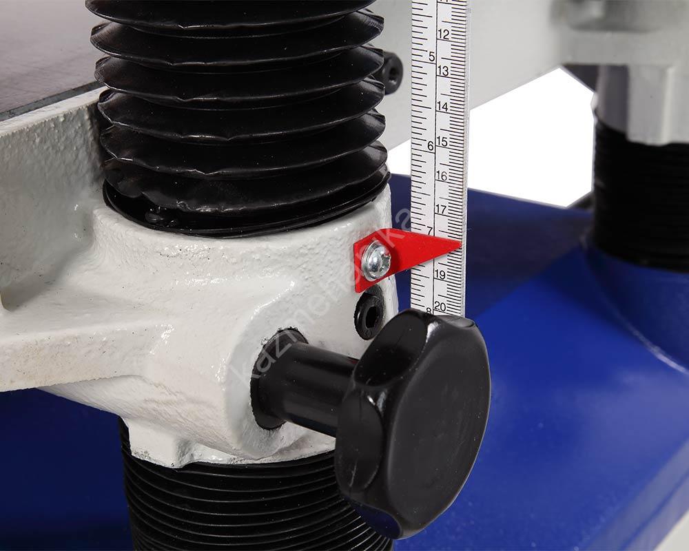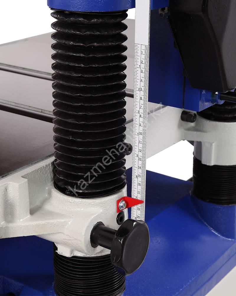 Регулировка глубины резания происходит путем поднятия и опускания стола при помощи маховика. Один его оборот перемещает стол на 1,5 мм. Максимальная высота рейсмусования — 203 мм, что позволяет обрабатывать заготовки, поставленные на ребро. Максимальная ширина обрабатываемой заготовки 508 мм.