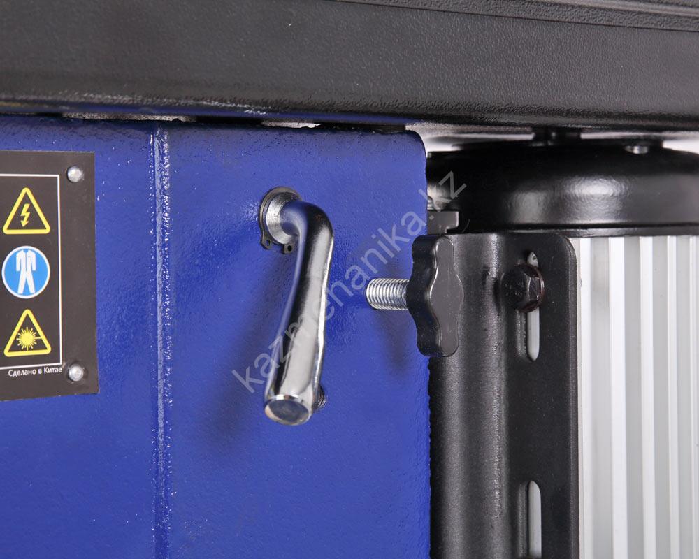 Управление станком осуществляется кнопками – «пуск», «остановка», выключатель снабжен крышкой. Кнопка выключения лазерного указателя расположена над выключателем. Следует обращать внимание на защитный экран и крышку ременной передачи, при их открытом состоянии станок не запуститься, так как установлены микровыключатели.
