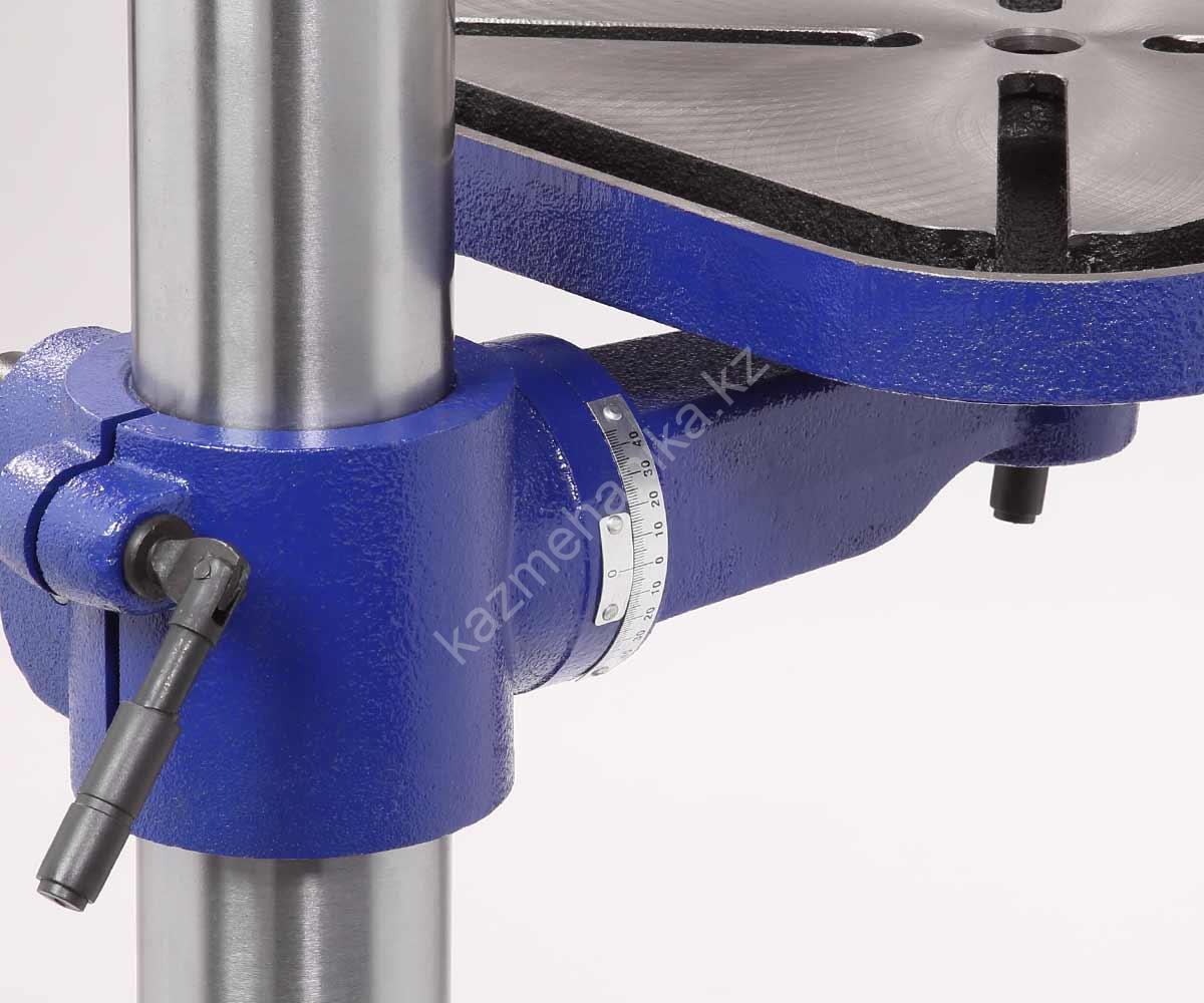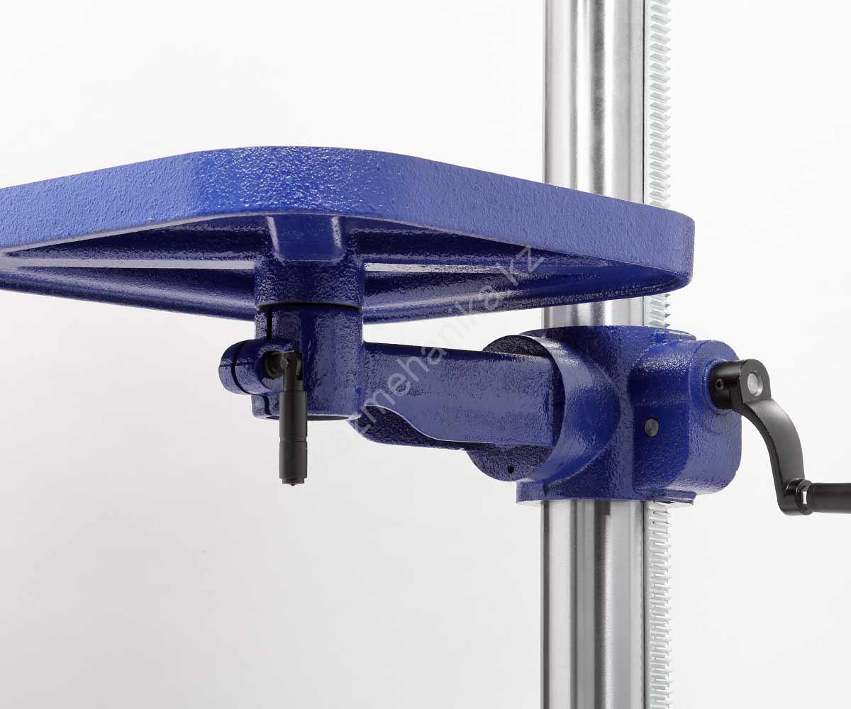 На колонне (её диаметр 80 мм) имеется зубчатая рейка для плавного поднятия/опускания стола, его положение настраивается с помощью рукоятки.
