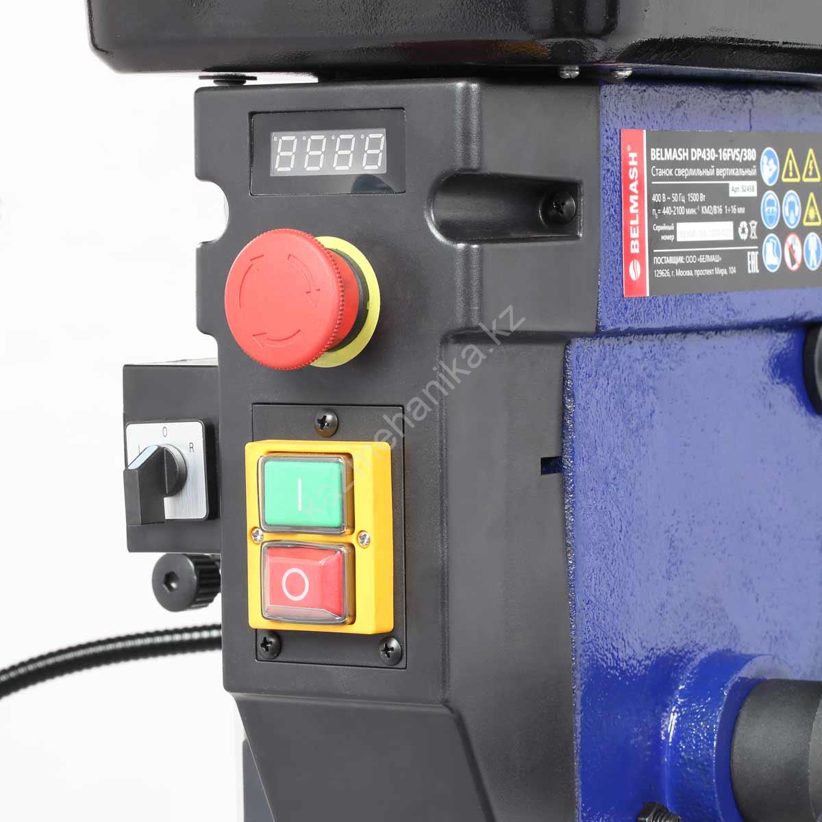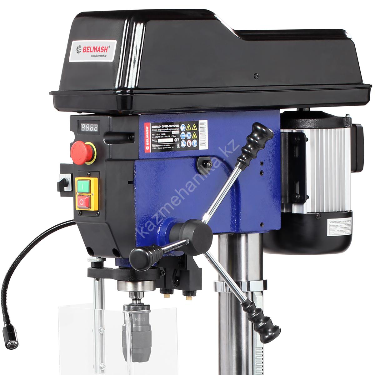 Модель DP430-16FVS одна из самых интересных в линейке по функционалу. Стол, опора и корпус сверлильной головки выполнены из чугуна, что придает станку серьезный вес. Установка напольная. На основании имеется четыре отверстия для дополнительной фиксации станка.