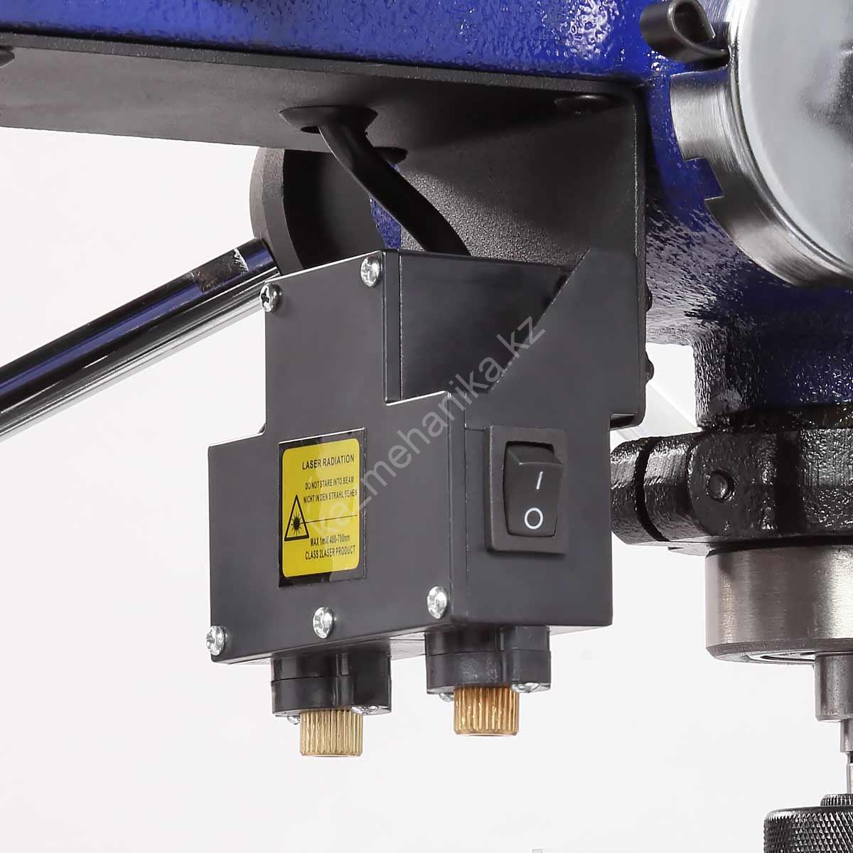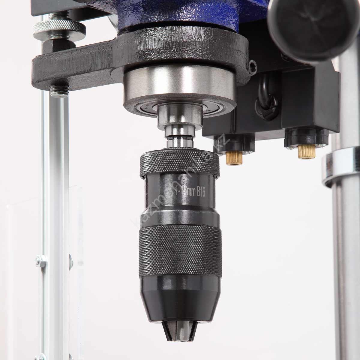 Максимальный ход пиноли шпинделя 150 мм. Возможно ограничение хода пиноли, путем перемещения стопора по планке. Наконечники тройной рукояти удобной формы, что способствует плавной подаче сверла к заготовке.
