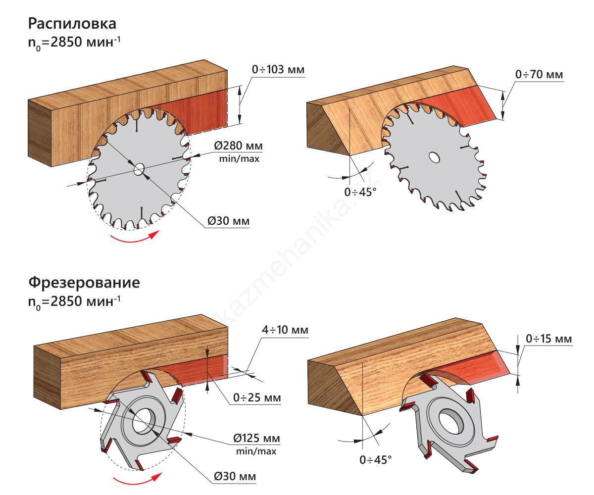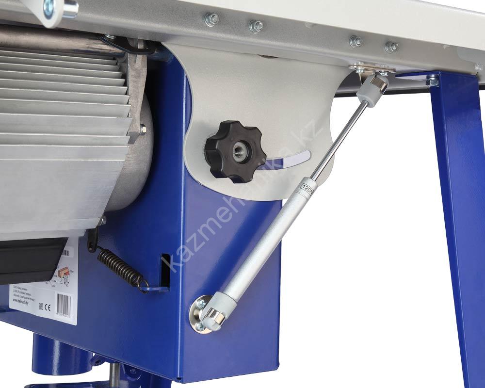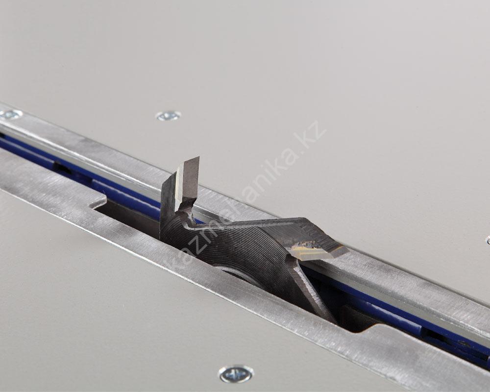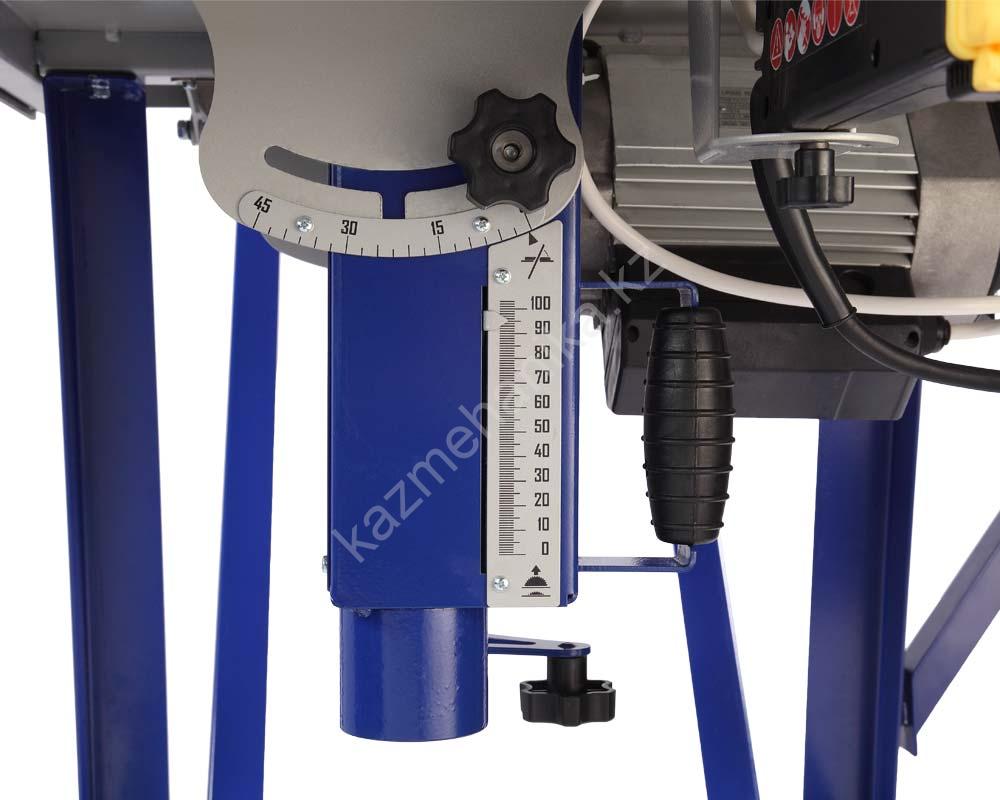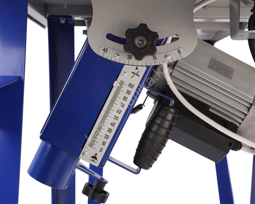 - Конструкция механизма наклона и подъема режущего инструмента позволяет плавно и точно выставить требуемый угол и высоту.