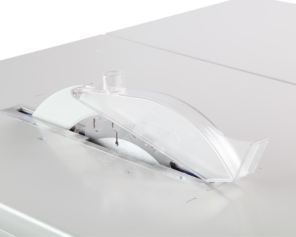 Для подключения внешних вытяжных устройств с целью сбора пыли и отходов резания станок имеет патрубки диаметром 28 мм на кожухе пильного диска и 63 мм на корпусе станка.