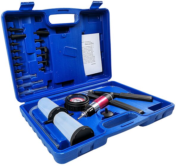 В комплекте: ручной насос с мановакуумметром, 2 шланга 60 см, 13 адаптеров, 3 соединительных трубки и 2 емкости для жидкостей.