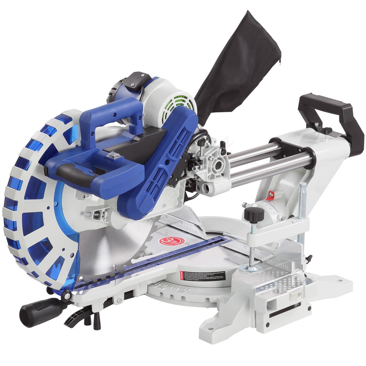 Пильный узел имеет наклон в обе стороны от 60 до 35 мм. Это значительно расширяет возможностями настройки и регулировки, к тому же пила оснащена большим (305 мм) диском. Одно из основных достоинств этой модели – «симметричный» механизм наклона, позволяющий делать скосы на угол до 45° и в правую, и в левую сторону. Это удобно при работе с деталями, которые нельзя переворачивать (плинтусы и т.п.).