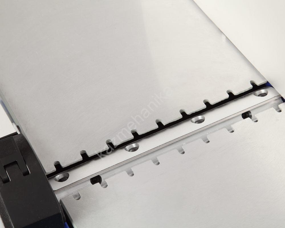 Строгальные столы алюминиевые, общая длина 737 мм. Этого достаточно для работы с не очень длинными заготовками. Максимальная ширина строгания составляет 204 мм.
