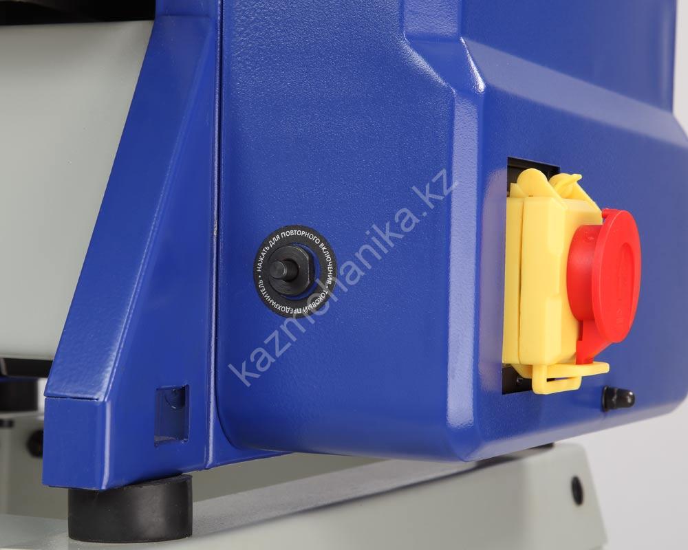 Станок оснащен коллекторным двигателем 1800 Вт, который имеет защиту от перегрузки. В случае срабатывания — размыкается электрическая цепь, происходит остановка двигателя. Магнитный пускатель предотвращает самопроизвольное включение в случае отключения питания.