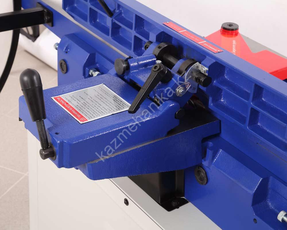 Размер параллельного упора 910×123 мм, он позволяет осуществлять строгание под углом 90 и 45 градусов во внешнюю и внутреннюю стороны. Упор массивный, жесткий и надежный. Способ перемещения упора – скользящий, более быстрый и удобный при работе с заготовками разной ширины.