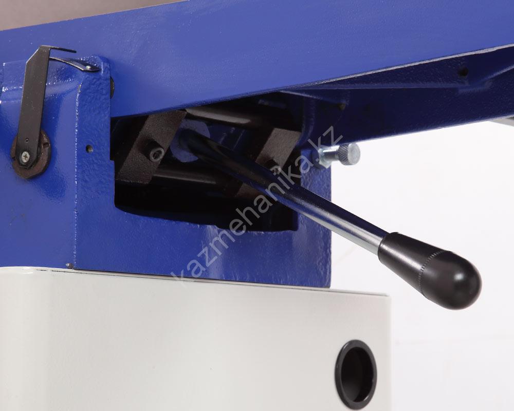 Станок имеет классическую конструкцию: на стальной тумбе расположены литые чугунные элементы: основание, рабочие столы, параллельный упор с кареткой.