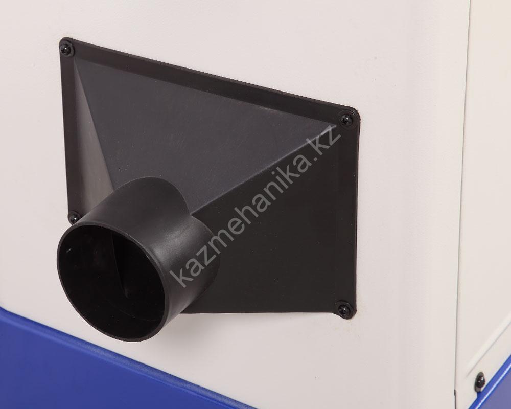 На стальном корпусе размещен патрубок (98 мм) для подключения системы аспирации. В нижней части основания установлена колесная система, которая позволяет перемещать массивный станок по мастерской.
