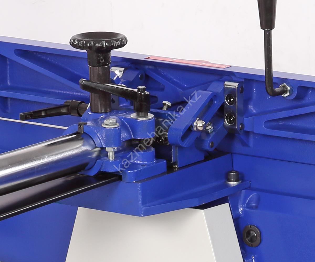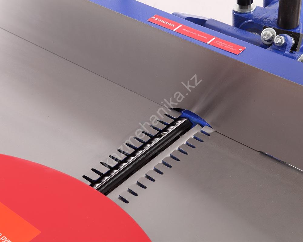 На станине из листовой сварной стали расположены литые чугунные элементы: основание, рабочие столы, параллельный упор с кареткой. Данная модель является одной из самых тяжелых – 360 кг.