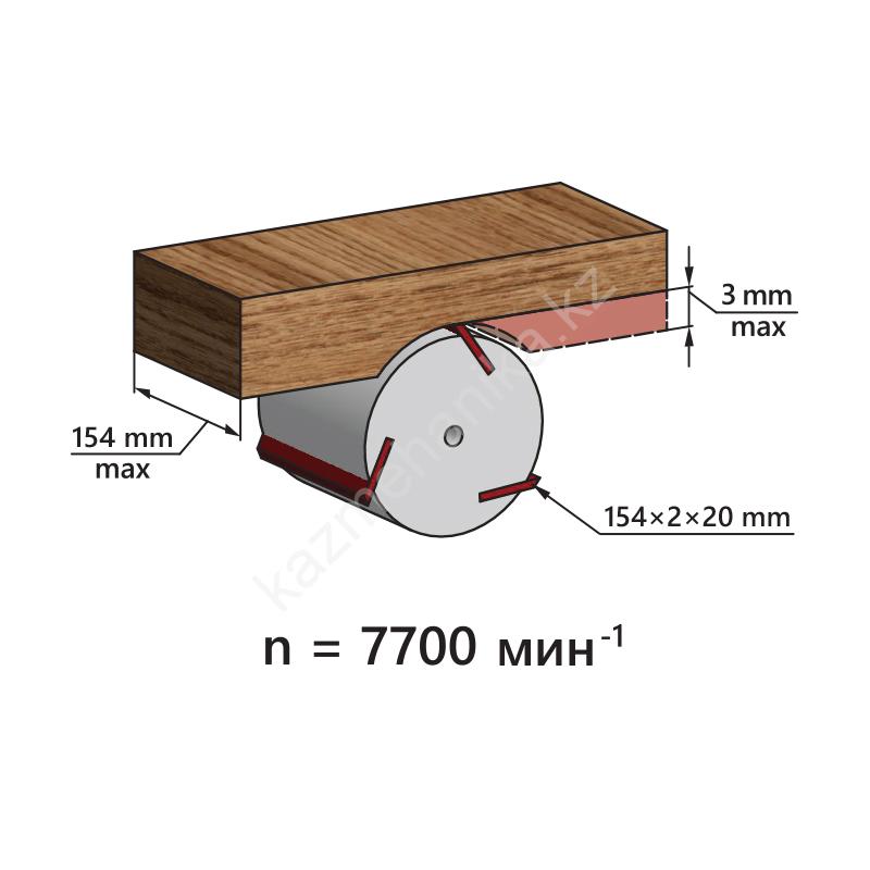 Максимальная ширина обрабатываемой заготовки составляет 154 мм. Строгальный вал оснащен тремя ножами.