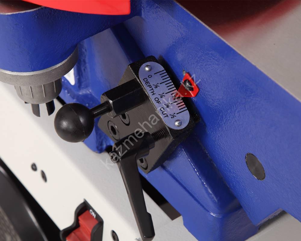 Максимальная ширина обработки составляет 152 мм, общая длина строгальных столов 1190 мм. Глубина строгания до 3 мм, для точной регулировки на станке размещена шкала с указателем.