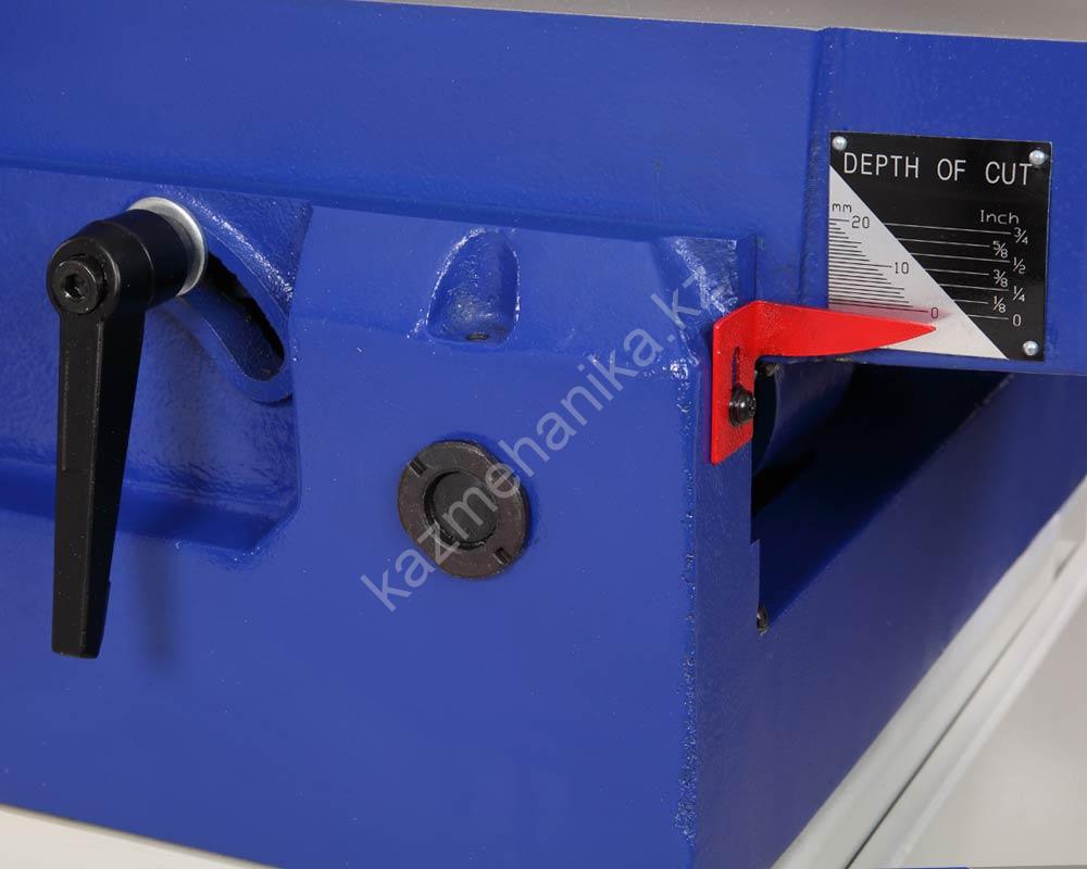 Регулировка положения столов осуществляется индивидуальными маховиками. Глубина строгания до 3 мм, для точной регулировки на станке размещена шкала с указателем.