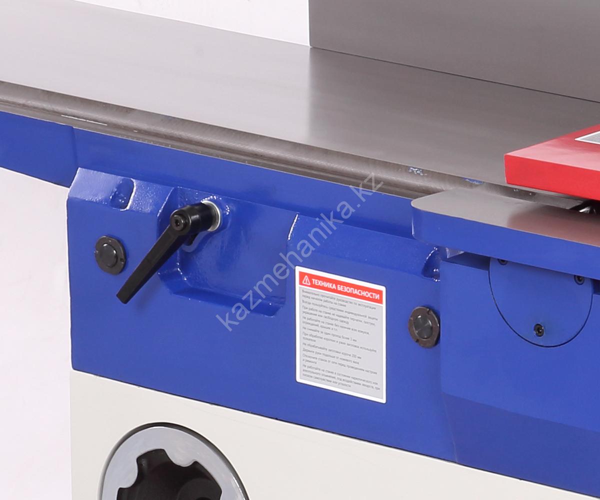 Размер параллельного упора 1185 × 136 мм, он позволяет осуществлять строгание под углом 90 и 45 градусов во внешнюю и внутреннюю стороны. Упор массивный, жесткий и надежный. Способ перемещения – реечный, более удобный механизм выставления угла.