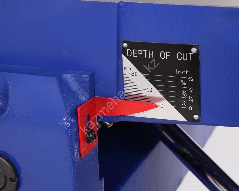 Подающий и приёмный столы перемещаются по направляющим «Параллелограмм». Это более удобный, надежный точный механизм перемещения и фиксации столов. Максимальная глубина регулировки подающего стола 19 мм. Глубина строгания до 3 мм, для точной регулировки на станке размещена шкала с указателем.