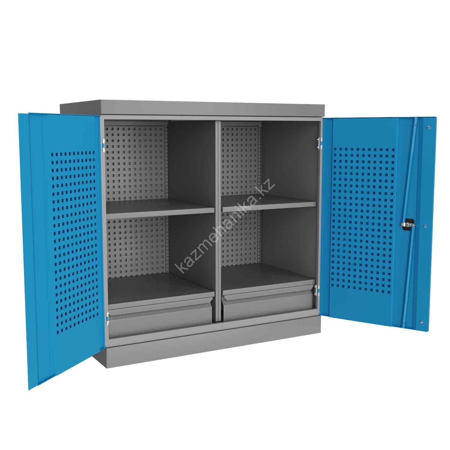 Металлический инструментальный шкаф Technic (антресоль) предназначен для хранения оснастки, приспособлений и инструмента на рабочих местах в мастерских, цехах и других производственных зонах.