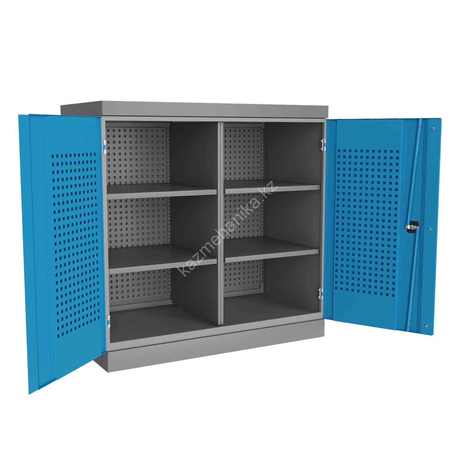 Металлический инструментальный шкаф Technic (антресоль) предназначен для хранения оснастки, приспособлений и инструмента на рабочих местах в мастерских, цехах и других производственных зонах.