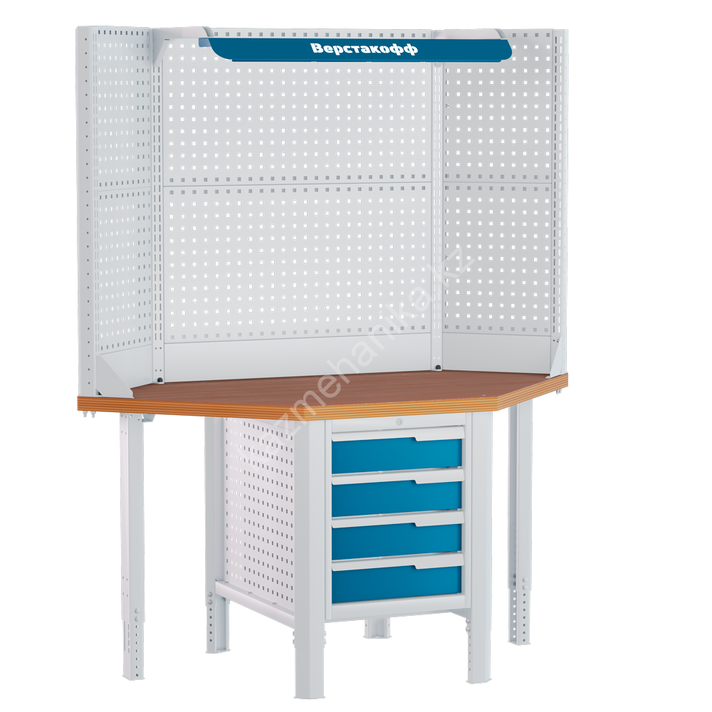 В случае, когда необходимо продолжить единую рабочую поверхность в углу помещения — применяется угловой блок для поворота поверхности под углом 90