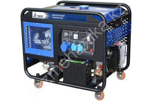 Дизель генератор TSS SDG 10000 EH предназначен для выработки электроэнергии с основными характеристиками: напряжение 220 вольт, частота 50 Гц и номинальной мощностью 10 кВт, с предпусковым подогревом, для облегчения запуска в сложных условиях, при температуре от 0 до -20 ℃, оснащенный колесным комплектом для удобства передвижения,