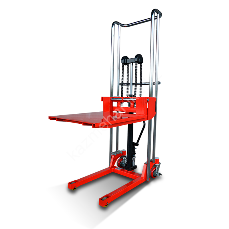 Ручной штабелер с гидравлическим приводом, используемый для работы с грузами весом до 400 кг. Обеспечивает быстрый подъём на высоту до 1,5 метров, что позволяет значительно ускорить процесс проведения погрузочно-разгрузочных работ и размещения на невысоких стеллажах.Подходит для стандартных паллетов (ширина вил 55 см). Возможна транспортировка товаров, не размещённых на поддонах, благодаря оснащению съёмной грузовой платформой.Конструкция сделана из прочных и качественных материалов, что гарантирует отличную устойчивость к высоким нагрузкам и поломкам. Колёса не оставляют следов на покрытии (задние – ведущие).